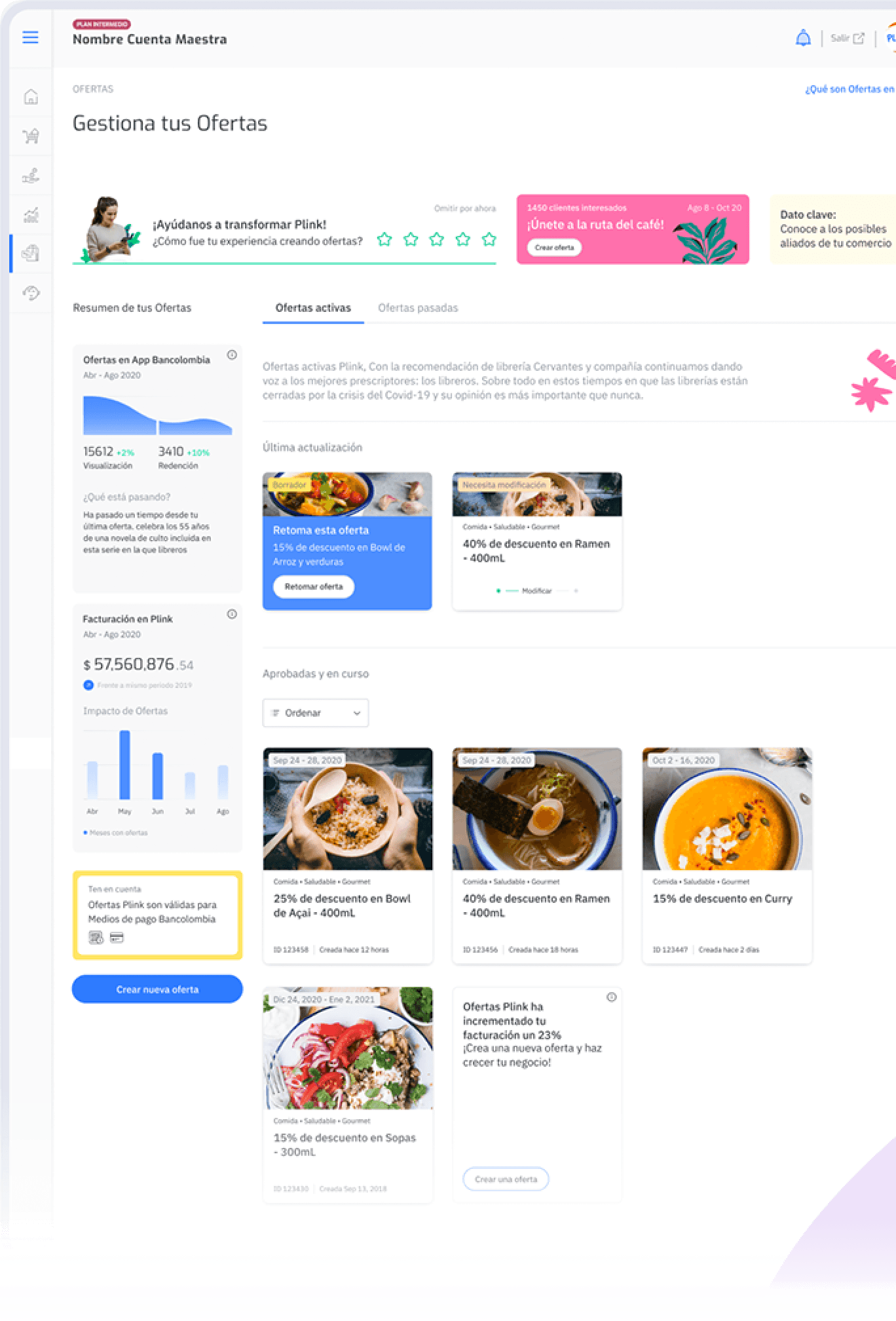 Businesses needed to create, manage, and track offers through a dashboard. A lot of them weren't very comfortable with digital tools. Consumers just needed to find and use those offers inside the Bancolombia app they already had on their phones.